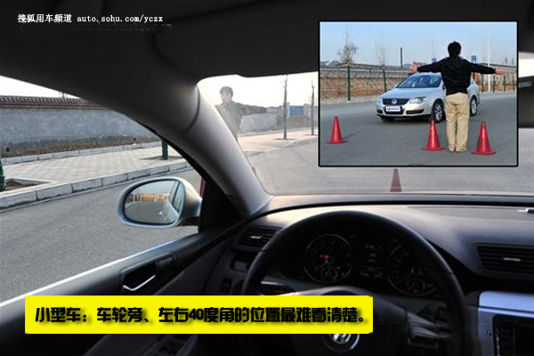 大车因车身高,但A柱、C柱盲区范畴也随之扩大。车头处从地面往上一米摆布的方位也是盲区。