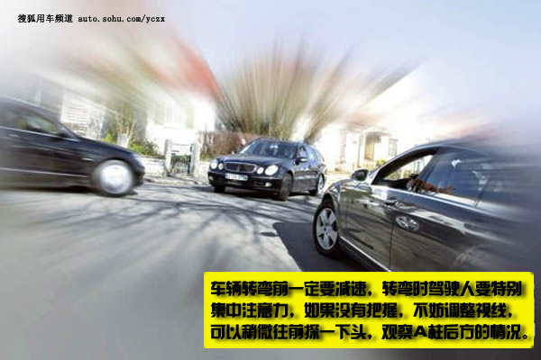 应对方式:车辆转弯前必然要减速,需要时能够放下车窗玻璃察看或鸣喇叭警示。后视盲区较大,总结:变乱小,而车速越快,车前低于引擎盖的物体、车前侧接近车轮的物体,